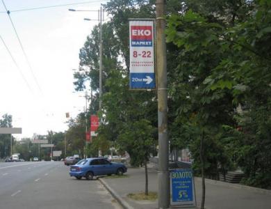 Холдер – вертикальний рекламний прапор зафіксований на опорі вуличного освітлення. Відносно новий для рекламного ринку України вид розміщення реклами.
